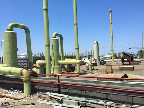通過洗滌的方式除去氣體中的雜質(zhì),然后通過風(fēng)機(jī)將達(dá)標(biāo)的氣體排出是廢氣處理的基本流程。本公司生產(chǎn)的玻璃鋼洗滌塔與風(fēng)機(jī)均具備非常優(yōu)秀的防腐蝕性能,在工業(yè)生產(chǎn)中使用較多。下面展示一些玻璃鋼洗滌塔的安裝示例圖。