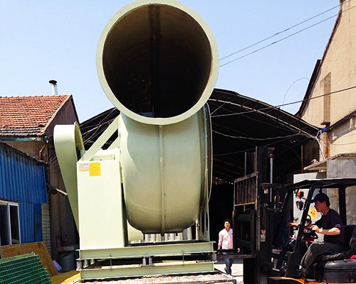 由于玻璃鋼離心風機的外殼、架子、電機罩、皮帶罩等配件都是使用玻璃鋼材料制作的。所以在搬運或者吊裝時需要注意保護風機配件。從下圖中我們可以看出,在風機的底部裝有彈簧減震裝置,減震裝置的底部有底座。在使用叉車裝車時,可從該處進行起手。當風機到達施工現場時可能需要使用吊車將風機運送至制定地點,我們在組裝風機時在風機架子一側預留了吊車專用的掛鉤。上面介紹的就是玻璃鋼風機搬運與安裝時的注意事項。